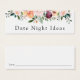 Have your bridal shower guests write down their favorite date night idea on this simple date night card featuring watercolor burgundy and blush flowers and greenery.