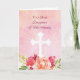 Wish your daughter and her family a Happy Easter with this beautiful watercolor look flower background. A cross is centred with white rays. Send them a religious blessing on Easter.