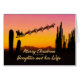 A Christmas card for your daughter and her wife showing Santa flying over the desert. Lots of tall cactus are seen in silhouette. Wish a merry Christmas from the desert with a lovely sunset coloured card.