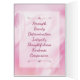 Wish your Daughter a happy birthday with this unique typography badge style card, featuring the message, "Happy birthday to my incredibly amazing Daughter. She is brave, beautiful and strong. I'm so proud she's mine." White type appears on pink floral background with white frame. Inside left panel has this type: Strength Beauty Determination Integrity Thoughtfulness Kindness Compassion." Then inside right panel includes this fully editable text: "You possess all these qualities and so many more, and I love you more than words can express.You deserve all the happiness in the world, and I hope you realise on your special day how truly and deeply you are loved."