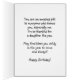 Inside includes this message but can be customised to fit your own needs:You are an amazing gift to everyone who knows you, especially me. I'm so thankful for a daughter like you. May God bless you richly in the year to come and always! Happy Birthday!