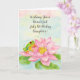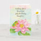 A charming choice for a July birthday, this design features a delicate pink waterlily blooming in the heart of summer, symbolizing love, renewal, and the beauty of growing through each season of life. The red-eyed tree frog adds a playful spark of wonder and happiness, bringing a sense of warmth and gentle joy to the scene. Together, the nature-inspired artwork creates a tender and uplifting keepsake, making it a heartfelt birthday card for a daughter.