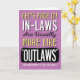 Wish your Daughter-in-law a happy birthday by complimenting her with this fun card featuring this message: Let's Face it! In-laws are usually more like "OUTLAWS" (Especially Daughters-in-law! Just Sayin'). Design appears in bold white, yellow, and black letters on orange background.