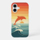 Dauphin minimaliste sautant au-dessus des vagues dans un style vintage apaisant.
