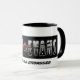 WHITE MUG WITH BLACK HANDLE AND RIM. DAVE EVANS LOGO WITH KING OF ALL BADASSES UNDERNEATH.