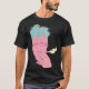 I give wanted to give this a 4 instead of a 5 because these Basic DARK T0shirts run unexpectedly SLIM or Narrow. Which is great if you do not have a potbelly, but I have a paunch. It isn't the shirt's fault that I've got a beer belly. The design and shirt itself is a quality cotton shirt. The color is more of a deep purple, but still a very pretty color. The Basic DARK T-shirts run a bit SLIMMER than the Basic Ts. The neck is a fraction narrower (or seems to be narrower) also. I'm a paunchy middle-aged woman and my neck is 12 inches (31cm) thick and the neckline fell about the same as in the photo of the man, and I had the desire to tug it a bit. So if you're a thick necked man or like loose shirts, be aware these are slimmer shirts. Once I get rid of my lockdown paunch it'll look great. The shirt washed well in cold water with no apparent bleeding. We don't have a dryer, so it hung dry. Did not shrink. Love the colors and the design. The design looks smaller on my shirt than it does on the model on-line. But still, it looks good on the shirt. The printing looks as it does on the model, just the size seems fractionally smaller. Washed garment in cold water, hung dry and design appeared unaffected.