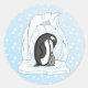 Glaciers and ice surround Annie the paisley emperor penguin as she cuddles up with her dad, Davin, to stay warm in the cold Antarctic snow and ice. This sweet and chilly scene is a great way to bring some cute penguins into your life.
