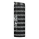 This unique "Dawn Data-Awakening to Wisdom" Travel Mugs & Thermal Tumblers in a black and white tech-cyber style graphic design and is double-sided in a modern tech aesthetic.