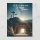 A powerful depiction of the empty tomb at sunrise, with radiant light pouring through the open entrance and three crosses silhouetted on the distant hill. A scene filled with hope, renewal, and the promise of new beginnings.