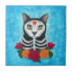 Day of the Dead Cat Sugar Skull Cat Art Tile