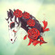 Horse skeleton head with red roses. Perfect for Dias de los Muertos, Halloween, or any day.