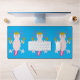 This awesome desk mat features a digital art image of a cute axolotl, a Mexican Salamander, wearing a sombrero and shaking maracas. The axolotl is pale pink with bright pink feathery gills and a bright pink tail. It has huge eyes and a smile on its face. The sombrero is yellow with a green cactus in the middle. The cactus is surrounded by chilies and Mexican sunflowers, also called Tithonia. The Maracas are yellow with red and green flowers and wavy lines on them.
