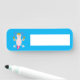 This awesome name tag can be erased and re-written so you can use it over and over again. The design features a digital art image of a cute axolotl, a Mexican Salamander, wearing a sombrero and shaking maracas. The axolotl is pale pink with bright pink feathery gills and a bright pink tail. It has huge eyes and a smile on its face. The sombrero is yellow with a green cactus in the middle. The cactus is surrounded by chilies and Mexican sunflowers, also called Tithonia. The Maracas are yellow with red and green flowers and wavy lines on them.