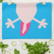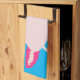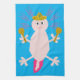 This awesome kitchen towel features a digital art image of a cute axolotl, a Mexican Salamander, wearing a sombrero and shaking maracas. The axolotl is pale pink with bright pink feathery gills and a bright pink tail. It has huge eyes and a smile on its face. The sombrero is yellow with a green cactus in the middle. The cactus is surrounded by chilies and Mexican sunflowers, also called Tithonia. The Maracas are yellow with red and green flowers and wavy lines on them.