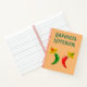 This awesome spiral notebook features a pair of chilis, a red chilli and a green chilli. They both have black eyes and pink mouths. Each Chilli is wearing a sombrero hat that has a skull of the opposite colour to the chilli on it in celebration of the Mexican Day of the Dead festival, Dia De Los Muertos. The sombrero also contains three flowers with alternating red and green petals representing the flag of Mexico. There is custom text so you can include a name.