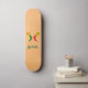 This awesome skateboard features a pair of chilis, a red chilli and a green chilli. They both have black eyes and pink mouths. Each Chilli is wearing a sombrero hat that has a skull of the opposite colour to the chilli on it in celebration of the Mexican Day of the Dead festival, Dia De Los Muertos. The sombrero also contains three flowers with alternating red and green petals representing the flag of Mexico. There is custom text so you can include a name to personalise the design.
