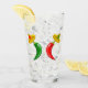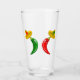 This awesome glass tumbler features a pair of chilis, a red chilli and a green chilli. They both have black eyes and pink mouths. Each Chilli is wearing a sombrero hat that has a skull of the opposite colour to the chilli on it in celebration of the Mexican Day of the Dead festival, Dia De Los Muertos. The sombrero also contains three flowers with alternating red and green petals representing the flag of Mexico.