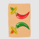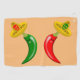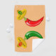 This awesome golf towel features a pair of chilis, a red chilli and a green chilli. They both have black eyes and pink mouths. Each Chilli is wearing a sombrero hat that has a skull of the opposite colour to the chilli on it in celebration of the Mexican Day of the Dead festival, Dia De Los Muertos. The sombrero also contains three flowers with alternating red and green petals representing the flag of Mexico.