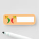 This awesome name tag can be erased and re-written so you can use it over and over again. The design features a pair of chilis, a red chilli and a green chilli. They both have black eyes and pink mouths. Each Chilli is wearing a sombrero hat that has a skull of the opposite colour to the chilli on it in celebration of the Mexican Day of the Dead festival, Dia De Los Muertos. The sombrero also contains three flowers with alternating red and green petals representing the flag of Mexico.
