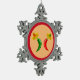 This awesome ornament features a pair of chilis, a red chilli and a green chilli. They both have black eyes and pink mouths. Each Chilli is wearing a sombrero hat that has a skull of the opposite colour to the chilli on it in celebration of the Mexican Day of the Dead festival, Dia De Los Muertos. The sombrero also contains three flowers with alternating red and green petals representing the flag of Mexico.