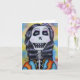 This happy and smiling Day of the Dead skeleton is from my original colour pencil drawing. This skeleton is dressed for her Day of the Dead celebration in a brightly coloured shawl of orange and blue. The background has a watercolor appearance with yellows, pinks and blues. See my store for more products with this image.