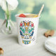 This colourful design celebrates Dia De Los Muertos (Day of the Dead) with spirit animals including eagles, fox, mountain lion, lizards, wolves, hummingbirds, frogs, wild horses, butterflies and flowers of the desert southwest styled as a sugar skull.