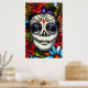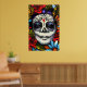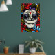 Vibrant floral Day of the Dead image on a quality poster print. Rich jewel toned flowers surround a woman's face painted for the Mexican Day of the Dead. Customisable in your choice of paper stock.
