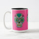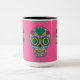 Day of the Dead Roses and Crystal Skulls on Pink Two-Tone Coffee Mug