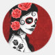 Day of the Dead Sugar Skull Girl - red Classic Round Sticker