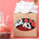 This Day of the Dead inspired design features a beautiful woman with sugar skull patterns on her face. Three roses appear in her jet black hair with two more roses tattooed on her arm. The girl is standing sideways with her head turned slightly towards the viewer. Her pure white skin really stands out against the black hair and dress as well as the slightly textured deep red background. This unique design is a stunning representation of this Day of the Dead woman.