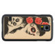 This Day of the Dead inspired design features a beautiful woman with sugar skull patterns on her face. Three roses appear in her jet black hair with two more roses tattooed on her arm. The girl is standing sideways with her head turned slightly towards the viewer. Her pure white skin really stands out against the black hair and dress as well as the deep grey background. This unique design is a stunning representation of this Day of the Dead woman.