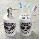 My sugar skull design in black, white, and red. These cute skulls decorate a pump dispenser and toothbrush holder for the bathroom.