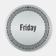 Metallic look circle graphic for daily organisation reminders. This magnet helps you organise Friday's tasks and reminders.