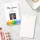 Featuring a lined notebook background and a vibrant crayon border, this badge is perfect for preschool and elementary educators. Personalise it with your name, grade level, and room number to create a fun and professional look that helps students, parents, and staff feel instantly connected.
