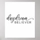 Poster print with "Daydream Believer" written in calligraphy font. Perfect for office spaces, lounges, bedrooms etc. and for those who love quotes or monochrome in their interior design.