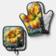 Daylily Daylilies Flower Yellow Teal Personalised Oven Mitt & Pot Holder Set