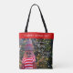 “May your days be merry & bright.” A white script typography quote and a close-up photo of a happy and cute, rustic log snowman, wrapped in a red and white striped scarf against lighted trees help you usher in Christmas and New Year. Feel the warmth and joy of the holiday season whenever you use this fun and unique personalised name tote bag. Matching cards, envelopes, stickers, giftwrap, pillows, housewares, jewellery, and other products are also available in my “Christmas Days Be Merry & Bright” store collection. Order this for someone special, or even yourself!