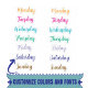 Day of The Week Stickers Decorative Monday to Sunday Self Adhesive Stickers for Planner or Journal for School. Can be customised by changing the colours and the font.