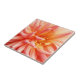 Dahlias are an incredible family of flowers, so many shapes, colours and sizes. The original photograph by MaeFlowers on this small Ceramic Tile shows an amazing flower in full bloom, a sphere of peach coloured petals. The gently tapering cylindrical petals seem to curve outward from the tile. The photo has a very three dimensional look.