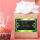 Matching a shimmery green frame and cute hearts graphic on a black background.