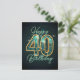 Dazzling Teal and Gold Bejeweled 40th Birthday Postcard