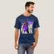 I give wanted to give this a 4 instead of a 5 because these Basic DARK T0shirts run unexpectedly SLIM or Narrow. Which is great if you do not have a potbelly, but I have a paunch. It isn't the shirt's fault that I've got a beer belly. The design and shirt itself is a quality cotton shirt. The color is more of a deep purple, but still a very pretty color. The Basic DARK T-shirts run a bit SLIMMER than the Basic Ts. The neck is a fraction narrower (or seems to be narrower) also. I'm a paunchy middle-aged woman and my neck is 12 inches (31cm) thick and the neckline fell about the same as in the photo of the man, and I had the desire to tug it a bit. So if you're a thick necked man or like loose shirts, be aware these are slimmer shirts. Once I get rid of my lockdown paunch it'll look great. The shirt washed well in cold water with no apparent bleeding. We don't have a dryer, so it hung dry. Did not shrink. Love the colors and the design. The design looks smaller on my shirt than it does on the model on-line. But still, it looks good on the shirt. The printing looks as it does on the model, just the size seems fractionally smaller. Washed garment in cold water, hung dry and design appeared unaffected.