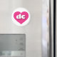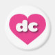 This magnet features a vibrant hot pink heart containing the bold, white, rounded lower case letters dc, a playful abbreviation for the District of Columbia.