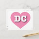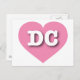This postcard features a vibrant pink heart containing the bold white upper case letters DC, the official abbreviation for the District of Columbia. The reverse side of the postcard in blank, awaiting your handwritten sentiments or customised text.