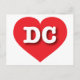This postcard features a vibrant red heart containing the bold, white, upper case letters DC, the official abbreviation for the District of Columbia. The reverse side of the postcard is blank, awaiting your handwritten sentiments or customised text.