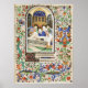 One of sixteen miniatures from the workshops of the Lucon Master and the Master of the Duke of Bedford, in blue, pink, and gold arched frames, some with cusping. Each miniature with a lavish acanthus border incorporating arms.