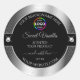 The design features a noble shimmering silver frame with fine decor lines, on a plain black background.