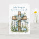 Celebrate the season with a warm Easter card designed especially for a deacon and his family. The design features a rustic wooden cross draped in soft blue flowers, set against a charming white fence that symbolises renewal and unity. Inside, a message of gratitude honours their faithful service while extending blessings for a joyful, hope-filled spring.