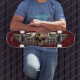 Dead Aces Skateboard Deck A nasty looking skull with six gun and bullet wings