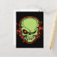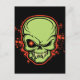 Green monster skull with yellow fangs and a red cross-hairs in its evil eye. With a red outline and smattering of splattering. T-shirts, hoodies, cards, gifts.